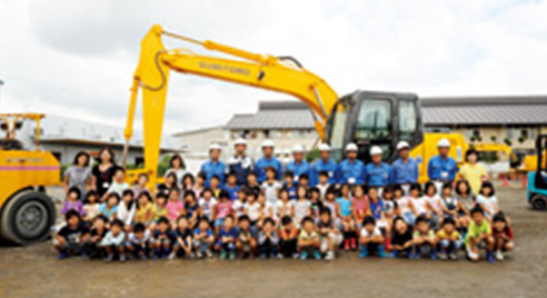 住友技術研修所(千葉、名古屋),積極配合當地小學的課外學習,邀請小學生們參加「現場機械參觀會」,讓孩子們近距離地參觀挖掘機、大吊車等建筑機械,加深了解。