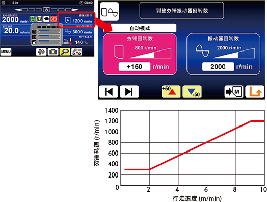 在施工過程中,當選擇夯錘轉速自動設定功能時,系統會根據行走速度自動設定夯錘轉速,可實現更精確的攤鋪作業。