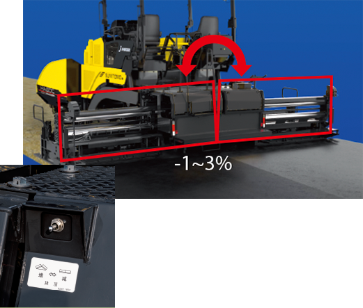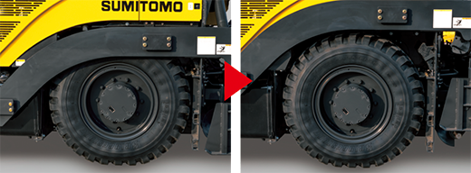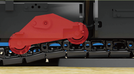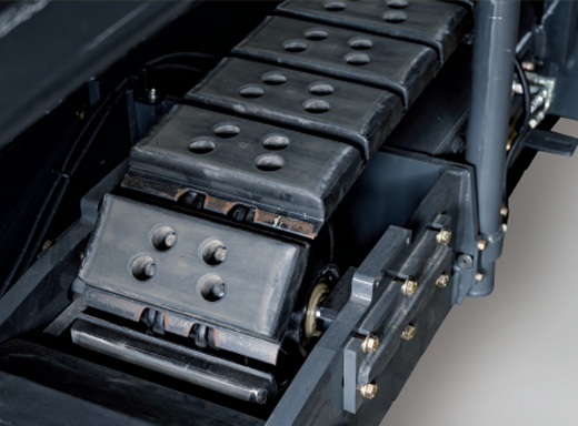 履帶的下部輥輪為滑動式,可吸收井蓋等路面上的凹凸不平。擁有優秀的接地性能,提升了施工平坦性。