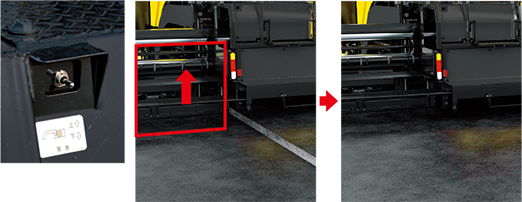 采用了能夠方便快速調節落差的一鍵落差調節開關裝置。可以控制由于攤鋪厚度變化而導致出現的落差,從而實現均勻攤鋪。即便是攤鋪厚度急劇地發生變化,也可以通過 落差開關方便快速地進行落差調節,確保攤鋪效果。
