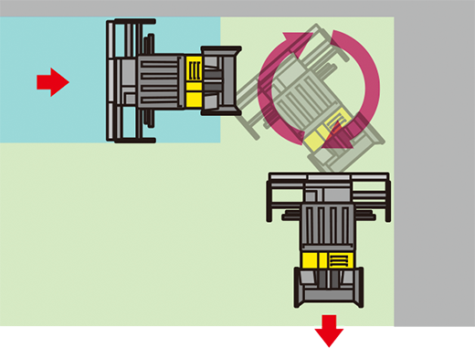 原地旋轉功能使機器在狹窄場地的施工變得更容易。在鋪裝完結處也可以順利鋪裝邊角路面,并可以橫向撤出機械,提高工作效率。