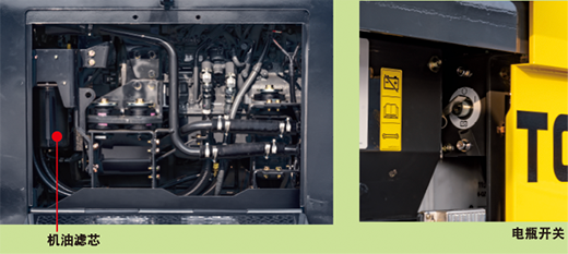 標配集中潤滑裝置,能自動給主機打黃油,省時省力。集中潤滑裝置安裝在駕駛座附近,黃油添加也很簡單。
