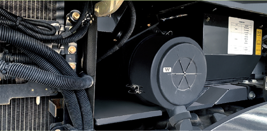 散熱器、液壓油冷卻器、中冷器等冷卻裝置都集中在主機左側,在采取并列布局提高冷卻性能的同時,散熱器還可拆卸,便于清掃。