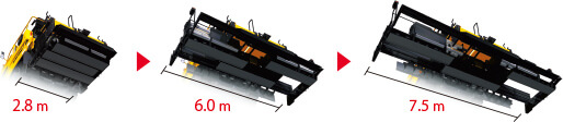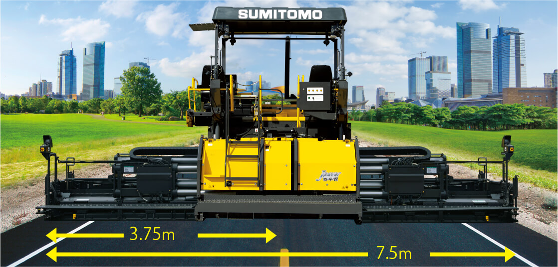 加寬覆蓋2.8~7.5m寬度。可一次完成2車道的作業。