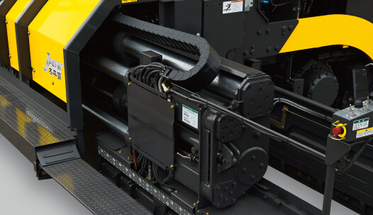 杰平霸采用三連式無級伸縮熨平板,可以伸縮自如。除了應對多種攤鋪寬度之外,施工中的攤鋪寬度變更也平穩順暢。另外使用延長熨平板時最大攤鋪寬度可達9m,可實現高效率的現場作業。