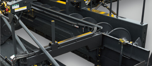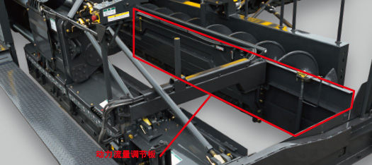 與后部熨平板連接的伸縮式流量調節板除了標準的手動型之外,還新設置了液壓式的選購件。外側使用液壓調整樣式,可以自如地調節合適的拌合料流量,實現拌合料向末端的順暢輸送。