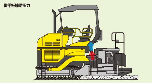 攤鋪較厚面層時,提升油缸可以利用背壓輔助熨平板提升。