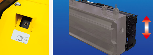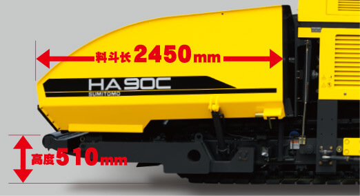 新型料斗因更加貼近地面及料斗延長200mm,容量進一步增大,使用合材大幅度便利化。因功能性正面形狀及寬幅傳送帶開口部抑制合材滯留,合材的導入將更加順暢,在講究速度的施工現場也可以從容應對。