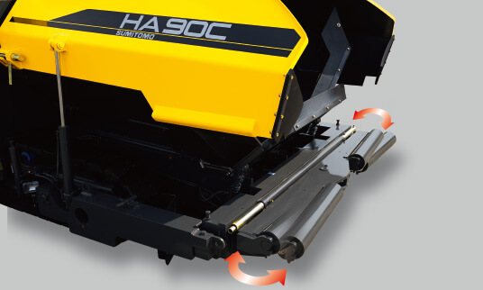 HA90C本體可與6m寬度的熨平板組合使用,與通常的6m(HA60C)攤鋪機相比,因功率強大且得心應手,現場難做的作業也能夠快速完成。