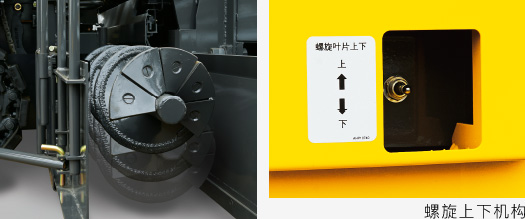 根據攤鋪厚度可以調節螺旋葉片的高度。(從地面算起可調節的范圍:115mm-265mm )