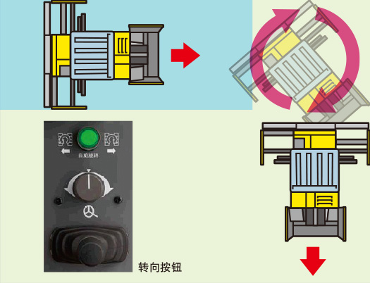 配備了轉向操作裝置,在狹窄的工地能夠輕松的施工。既使攤鋪到工地盡頭也可以從側面出來,大大提高了工作效率。