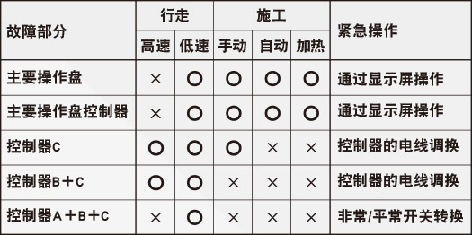 本設備設定許多緊急對應系統。攤鋪施工出現故障時,采用各種對應措施能使機械繼續作業或離開工地。