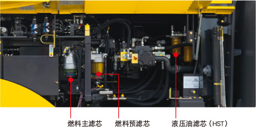 為了便于檢查油品,更換濾芯以及其他日常保養,需定期保養的部件都設置在便于作業的位置。整機兩側采用開放式邊門。
