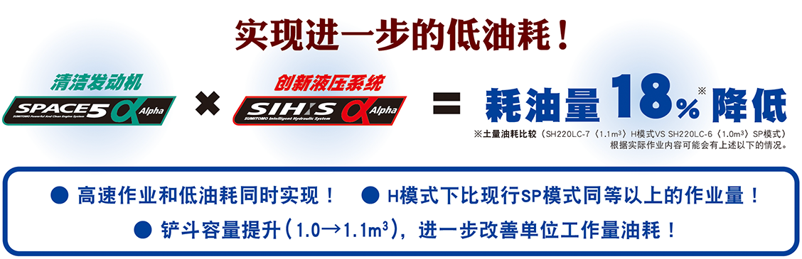 住友建機的特制液壓系統“SIH:S α”同時兼顧工作效率和出色的耗油性能。而且追求對現場和環境的更加友好。