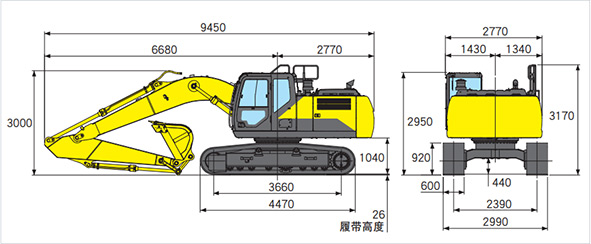 | 履帶全寬 | 2,990mm | 2,990mm | 3,190mm |