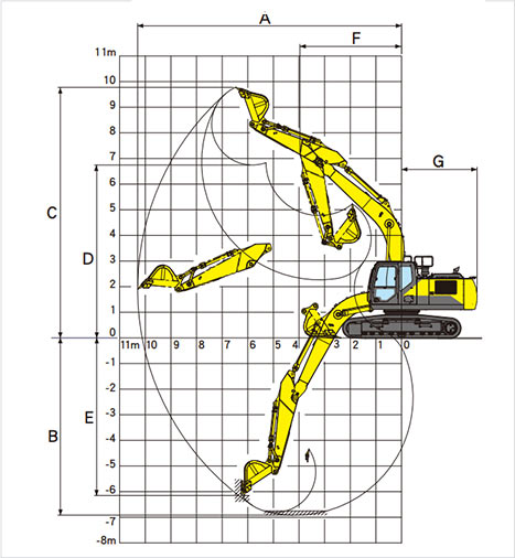 | A(最大挖掘半徑) | 10,300mm | 9,830mm | 10,800mm |