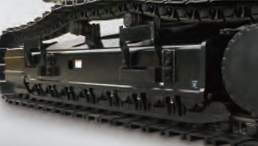底盤標準裝備對防止履帶脫落和輥保護發揮作用的全軌護板。在嚴酷的作業現場實現進一步的耐久性。