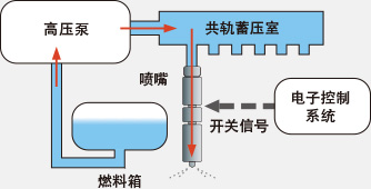 共軌式超高壓燃料噴射系統實現了超高壓和高精度的噴射。通過控制燃料噴射的時機和噴射量提高燃燒效率,大幅度減少PM(顆粒狀物質)。