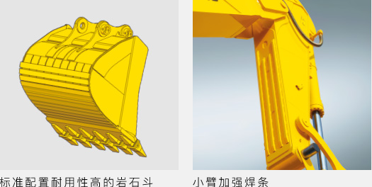 考慮到各種工作環境,提高了大臂和鏟斗的強度。通過降低油耗,減少經營成本。