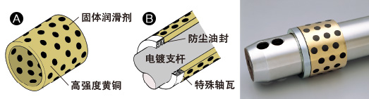 • A軸瓦的設計采用了在高強度黃銅中填入固體潤滑劑,在軸瓦表面形成膜,防止金屬間的接觸??杀3謨灹嫉臐櫥瑺顟B,減少連接部的摩擦。