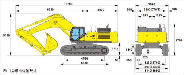 履帶全寬作業時(運輸時) 3990mm(3390mm) 4000mm(3490mm)