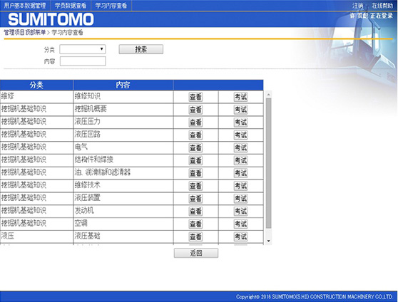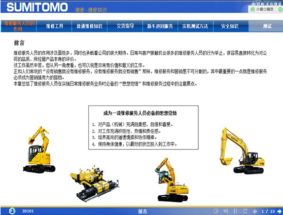 1、服務人員可以利用SUMITOMO網上E-lan系統,隨時隨地學習挖掘機維修知識。